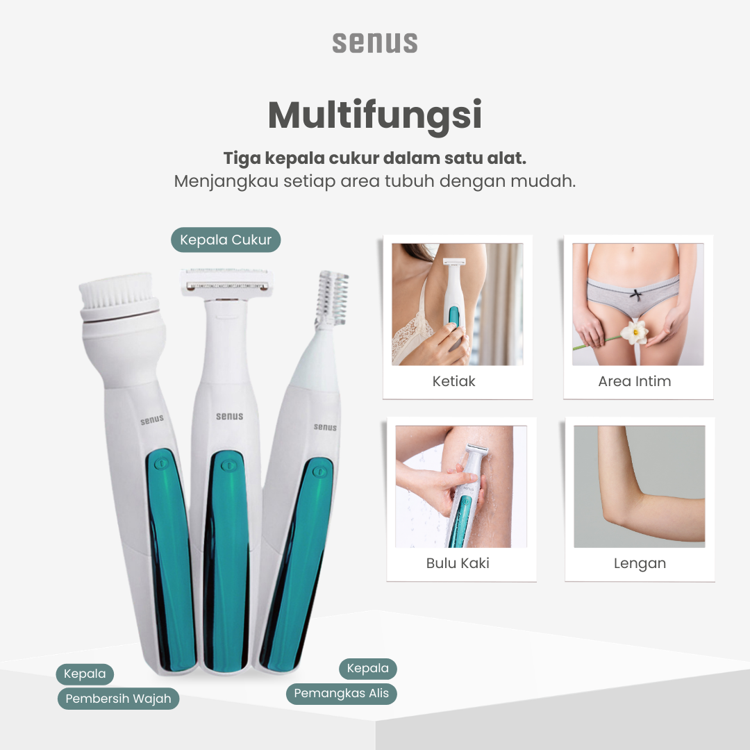 – Multifungsi: kepala cukur dibuat khusus untuk mengatasi bulu ketiak, bulu kemaluan dan bulu kaki, dan bulu badan.
